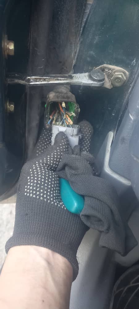 Востановление оборванной проводки к обеим передним дверям из кузова. Пассажирские 2 провода были спаяны. Водительский штекер был удален, а провода удлинены.